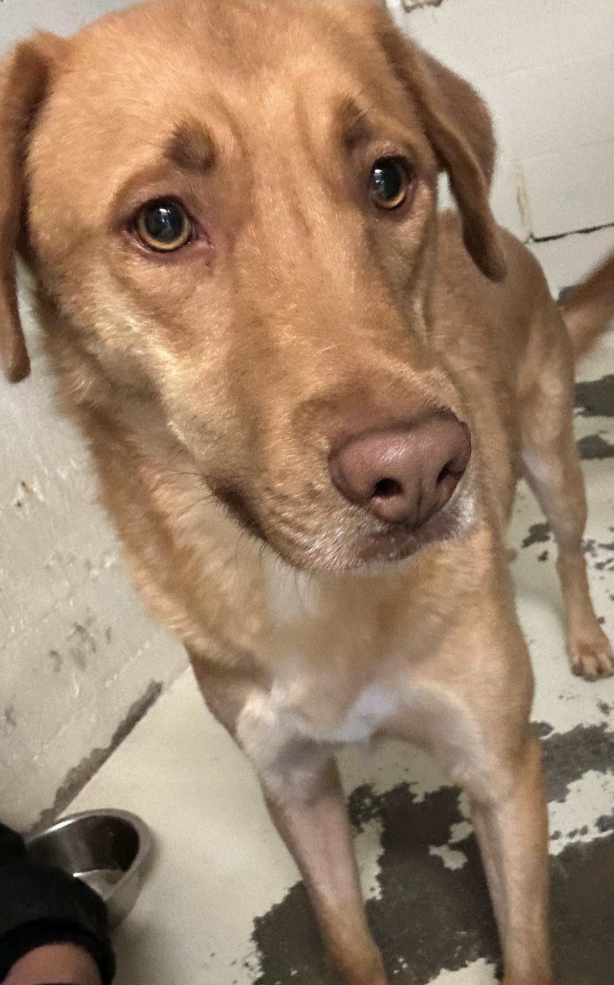 adult male lab type mix, approximately 4 years old, 60 lbs